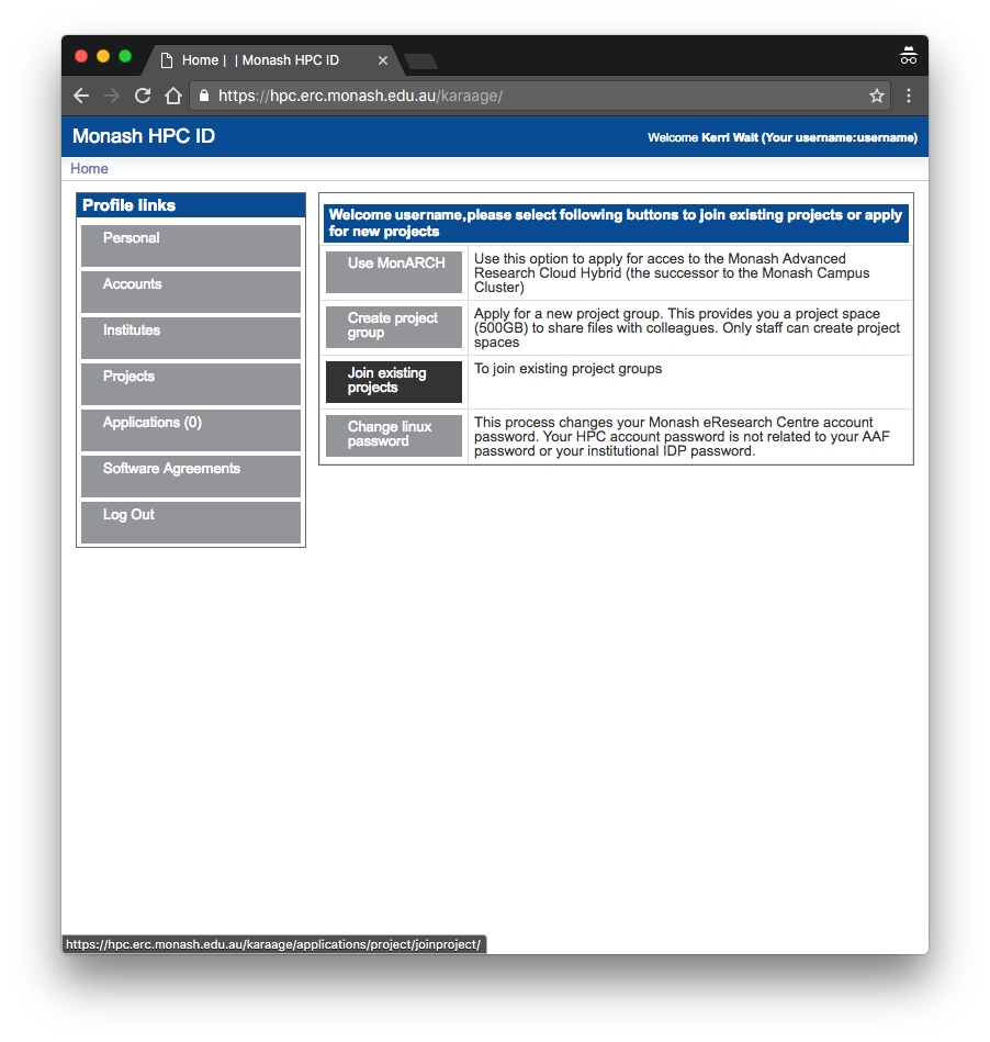 Only Monash PhD/RHD students and staff members can apply to create projects; if you are undergraduate or masters student, ask your supervisor to apply for a project.